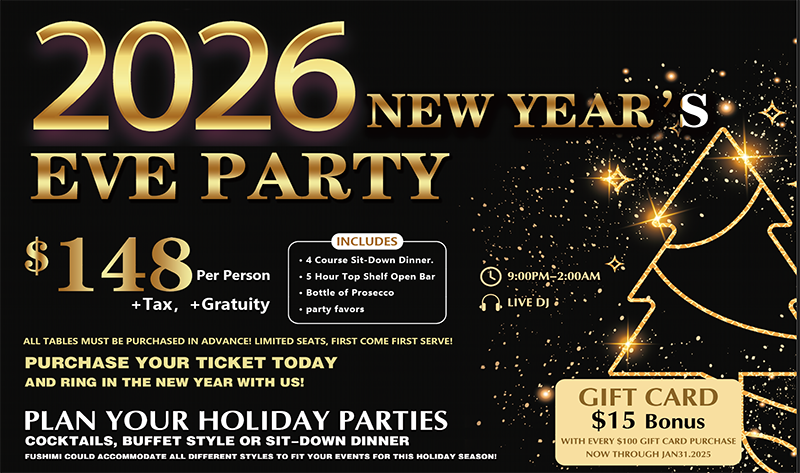 Founded in 2003, Fushimi Japanese Group has been an atelier for contemporary Japanese-fusion transformation, serving masterfully crafted Japanese dishes with innovative French tastes and techniques in a modern-meets-traditional style. Fushimi was first established in Staten Island and currently has five locations spread throughout Staten Island, Bay Ridge, Williamsburg, and our newest location, Manhattan.